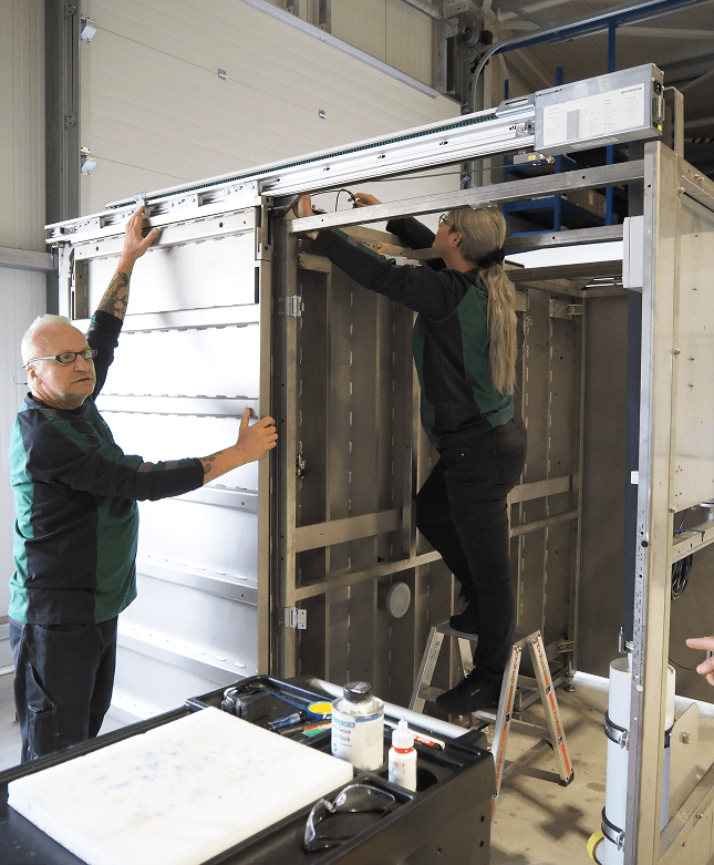 Erste Vakuumanlagen mit Hubtüren und der Technik auf der Kammer.